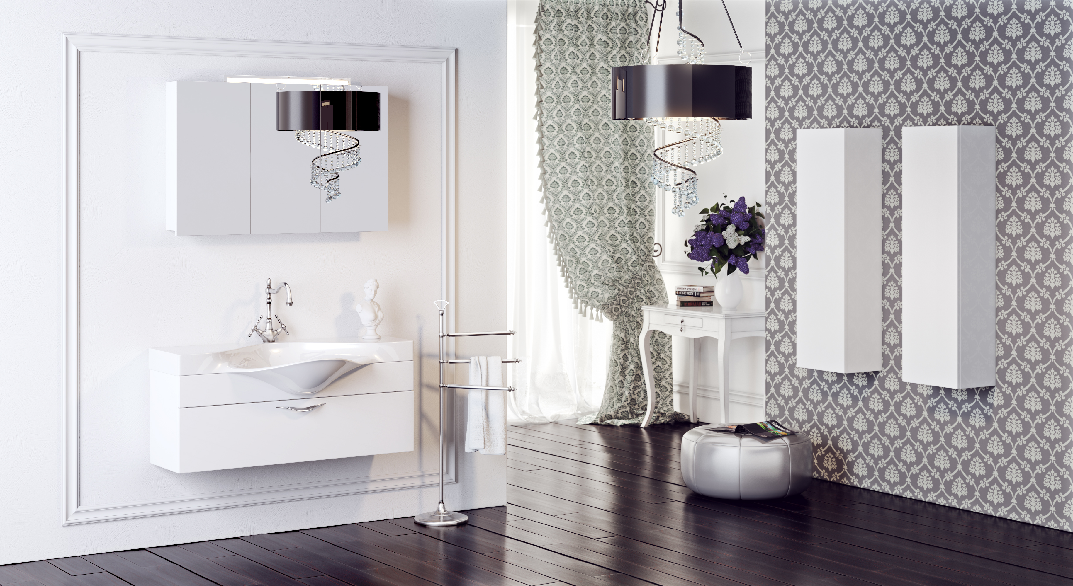 Aqwella - один из немногих производителей, использующий плиты МДФ и ДСП как для фасадов, так и для боковин. Воздействию влаги подвергаются, конечно, все части. Их защищают несколько слоев эмали. Оснащается мебель итальянской и австрийской фурнитурой, системами плавного открывания Blum и Hettich. Светильники и подсветка зеркал также производятся в Европе.