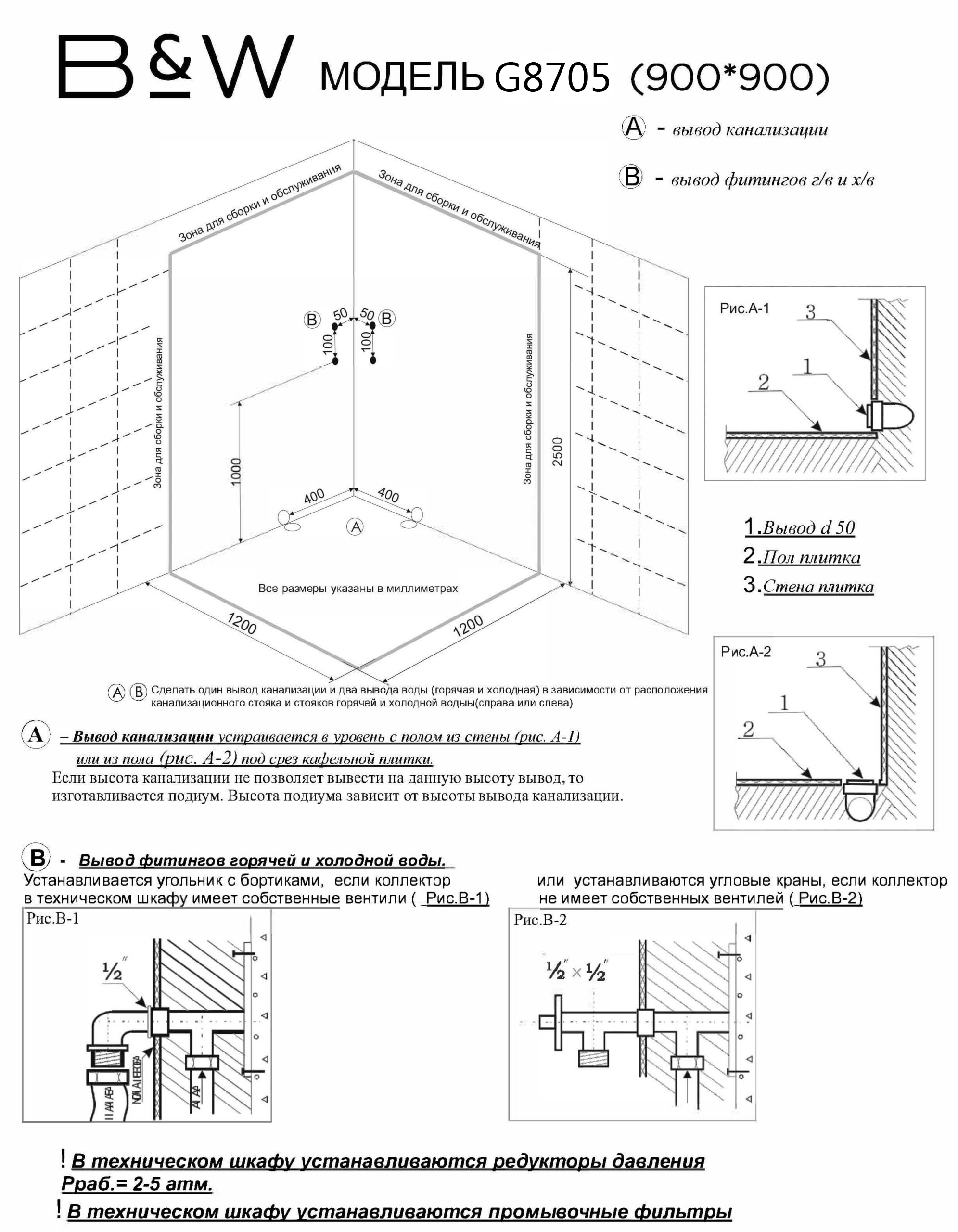 Душевая кабина Black & White Galaxy G8705 90х90х217 без крыши