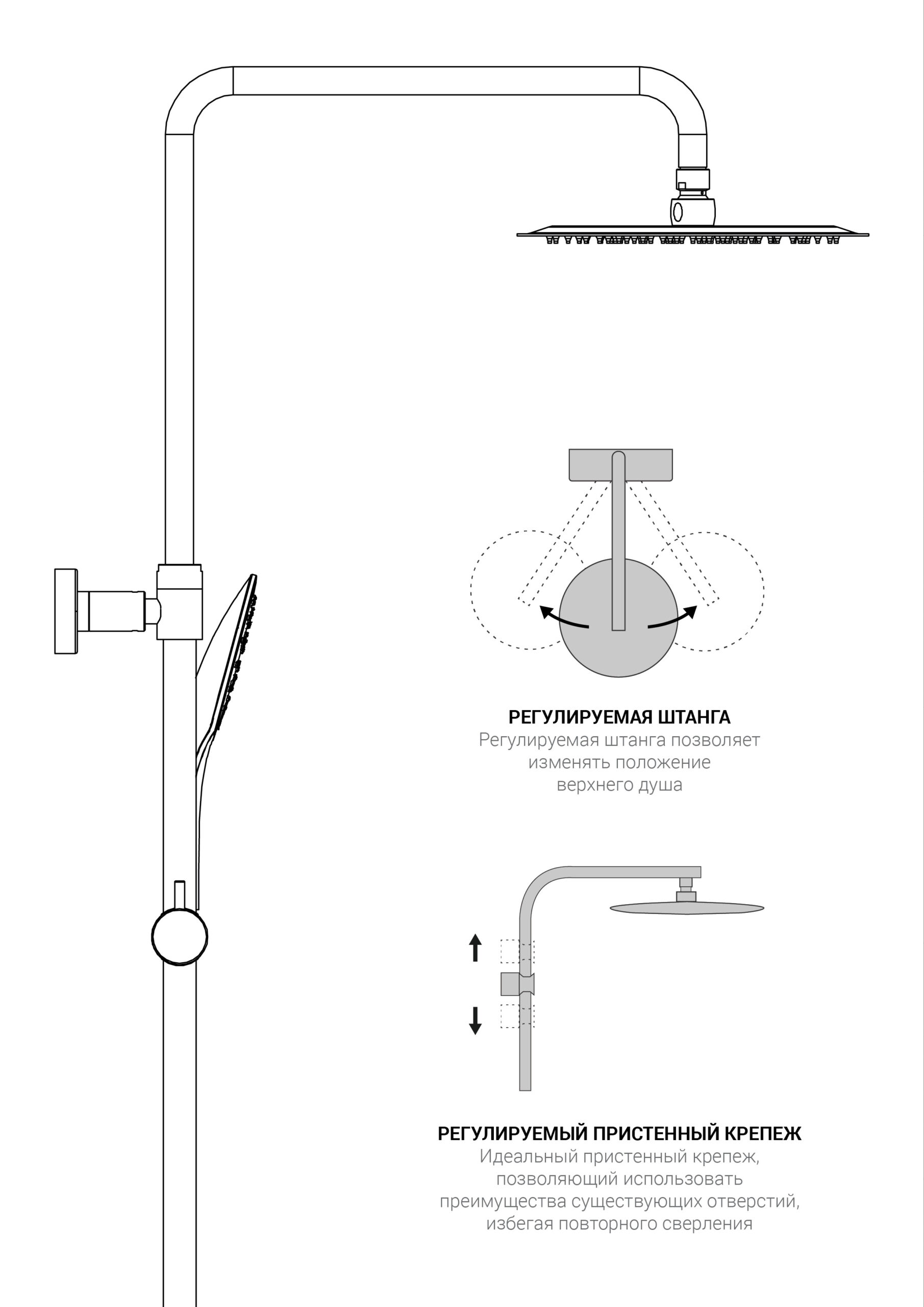 Душевой гарнитур - набор, включающий душевую лейку, шланг, настенный держатель или штангу.