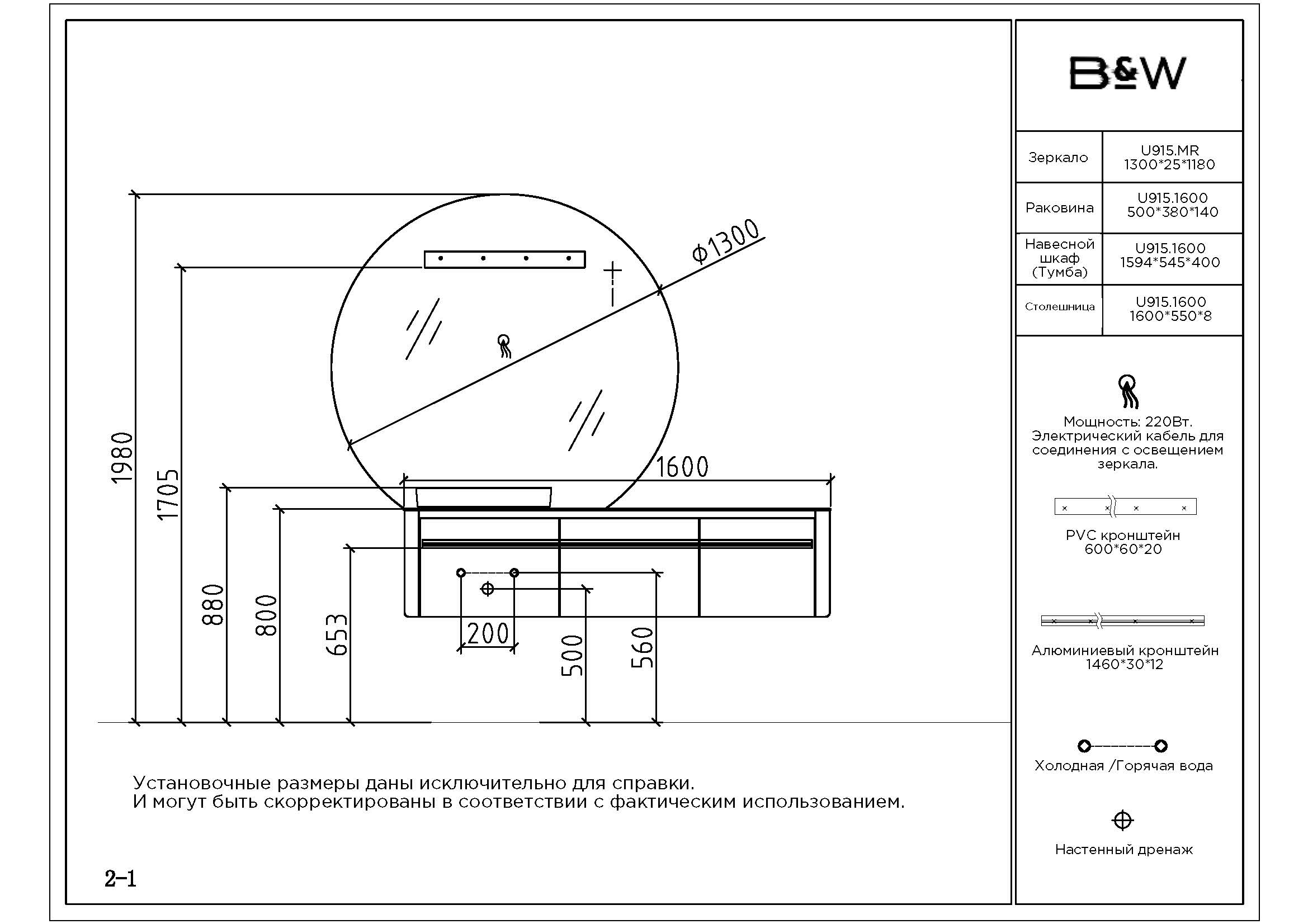 Комплект мебели Black & White Universe U915.1600 белый глянец/натуральный камень L