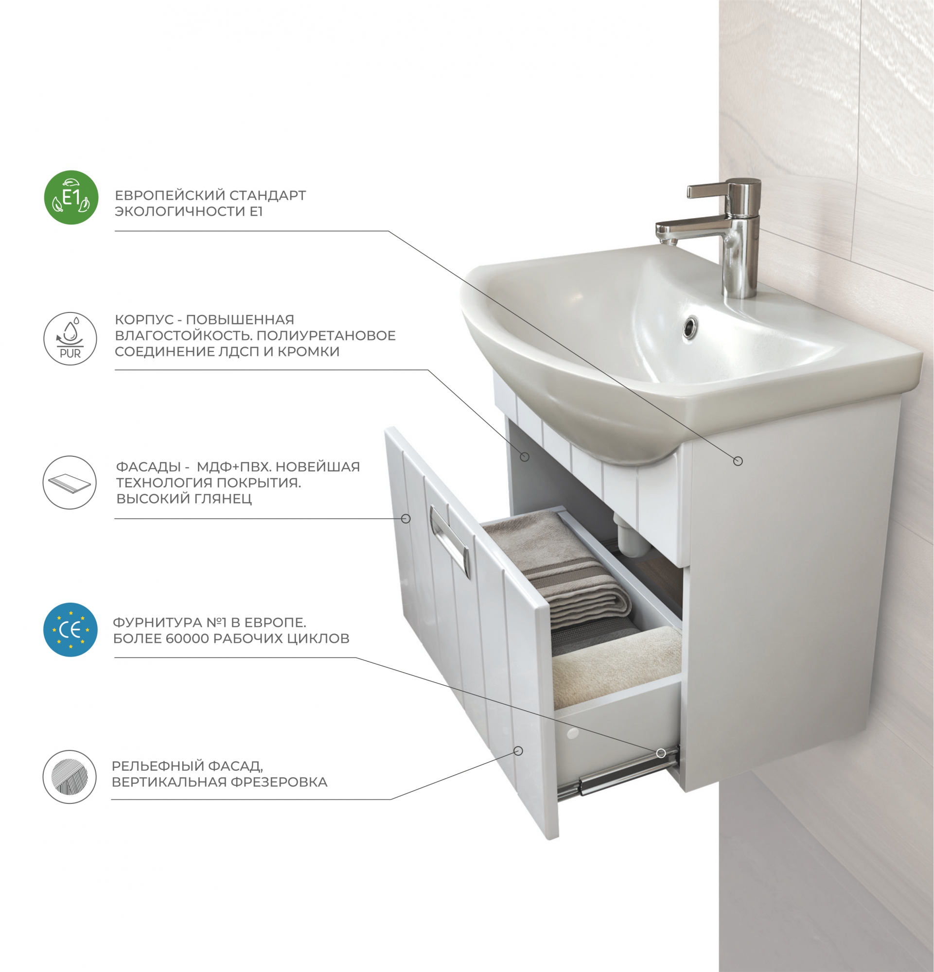 Инструкция для товара Комплект мебели Vigo Diana 60 белый, 1 ящик, зеркало-шкаф R