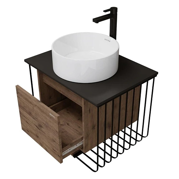 - Тумба под раковину Grossman Винтаж 70 дуб веллингтон/металл черный