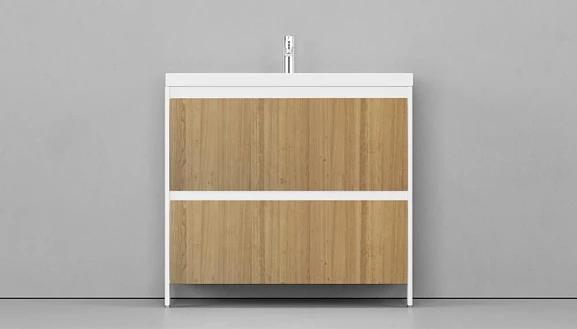 МДФ - очень популярный у производителей мебели для ванных комнат материал, который представляет собой древесноволокнистую плиту средней плотности, производимую путем спрессовывания волокон под сверхвысоким давлением. МДФ обладает высокой прочностью, влагостойкостью и при этом прост в производстве. Основными достоинствами МДФ можно назвать отсутствие реакции на резкую смену температур, стойкость к физическому воздействию, а так же тот факт, что изделия из МДФ огнеупорны и практически гипоаллергенны.