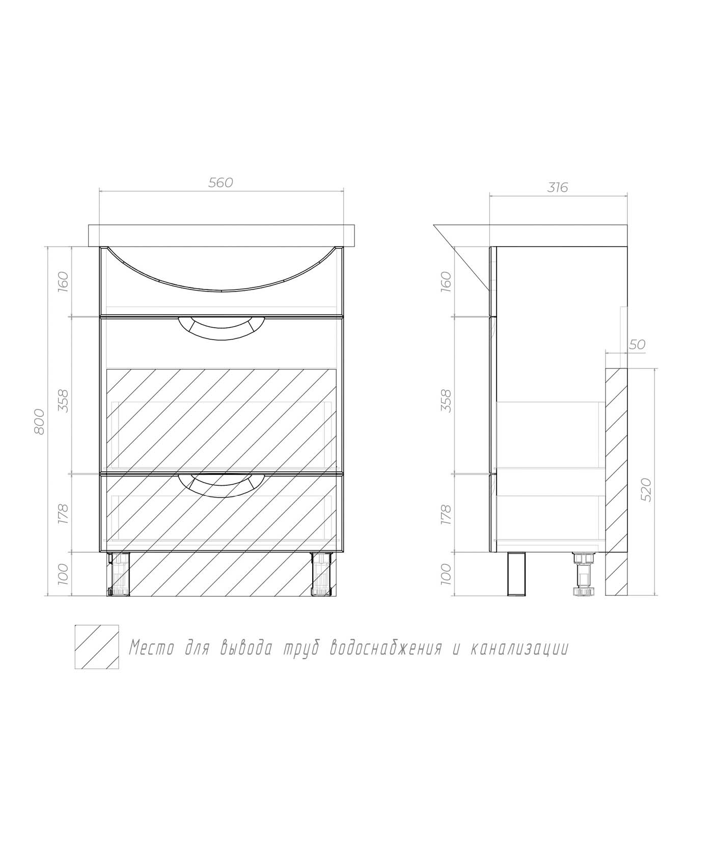 Тумба с раковиной Vigo Callao 60 белая глянцевая с ящиками