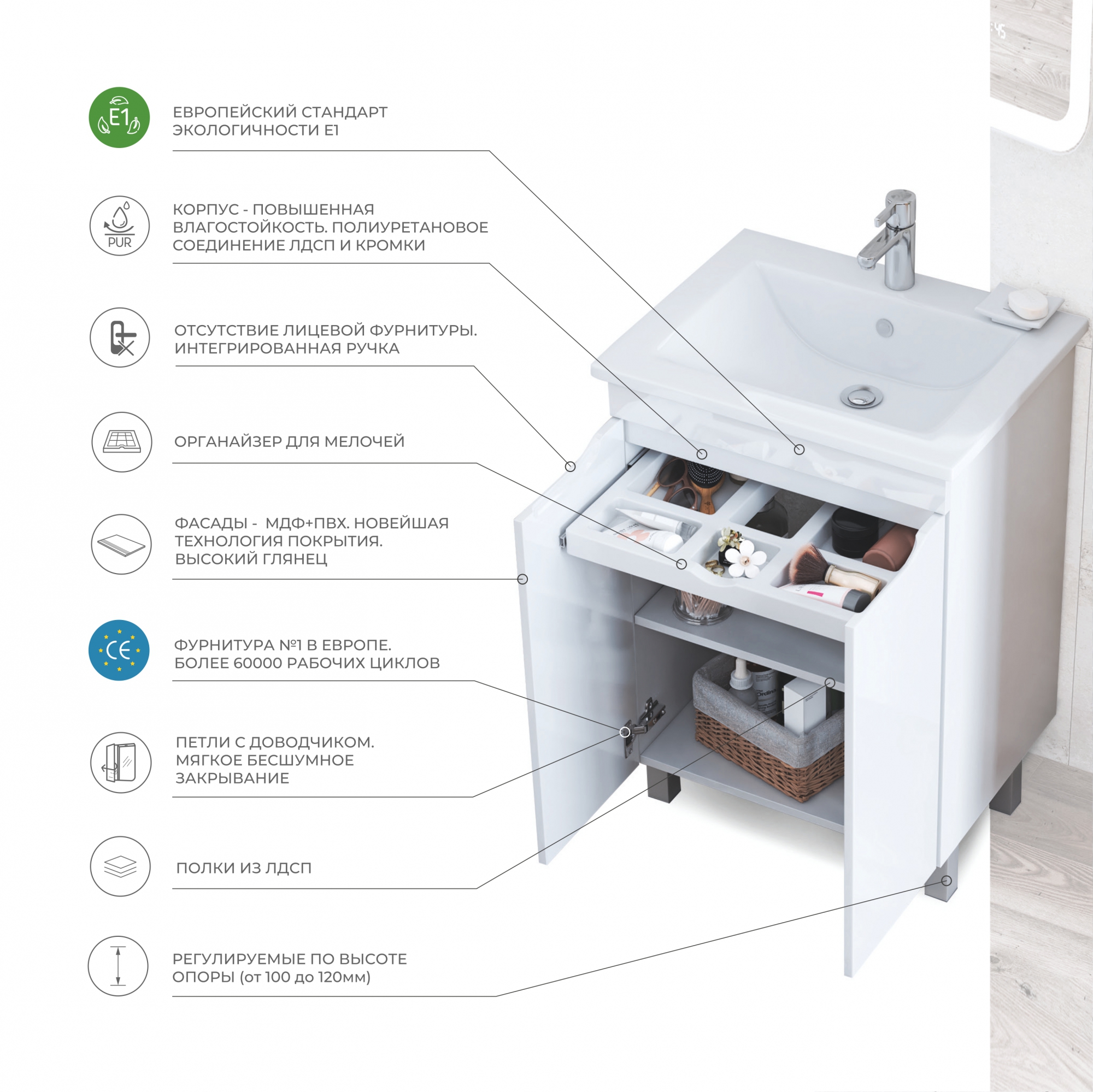 Тумба с раковиной Vigo Grani 75 белая глянцевая
