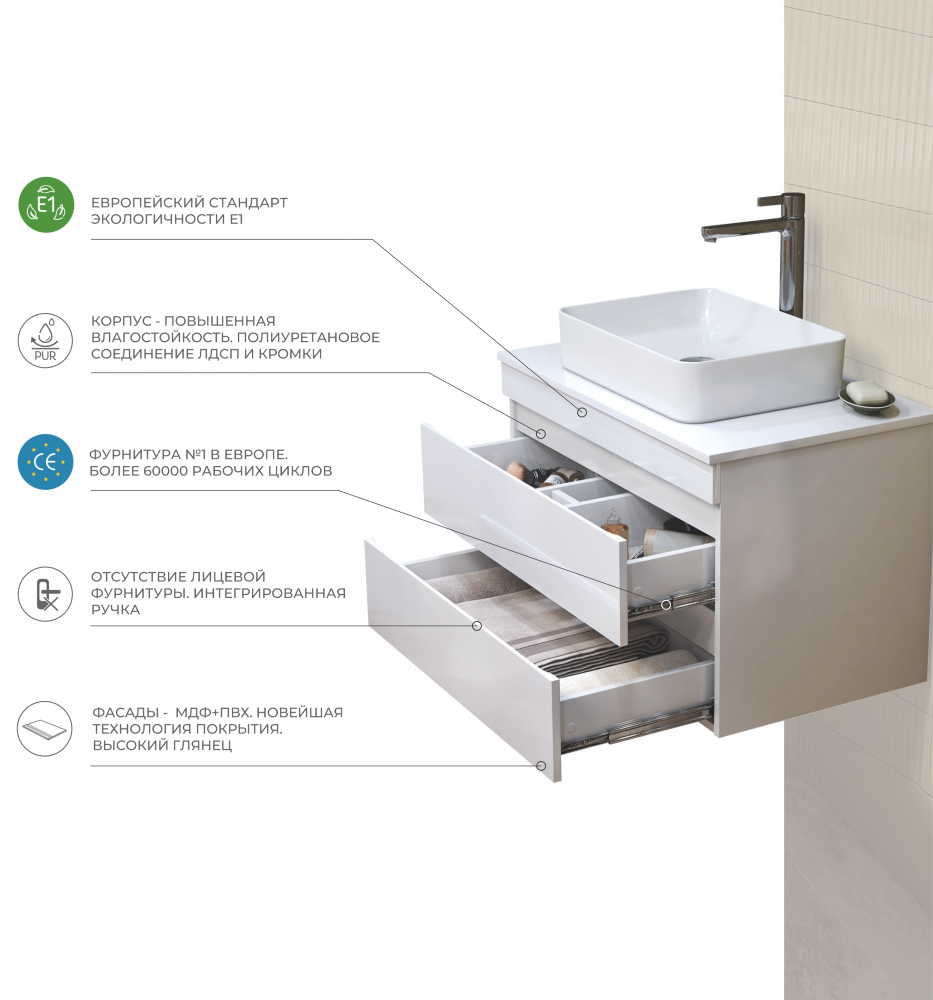Тумба с раковиной Vigo Urban 60 белая глянцевая со столешницей