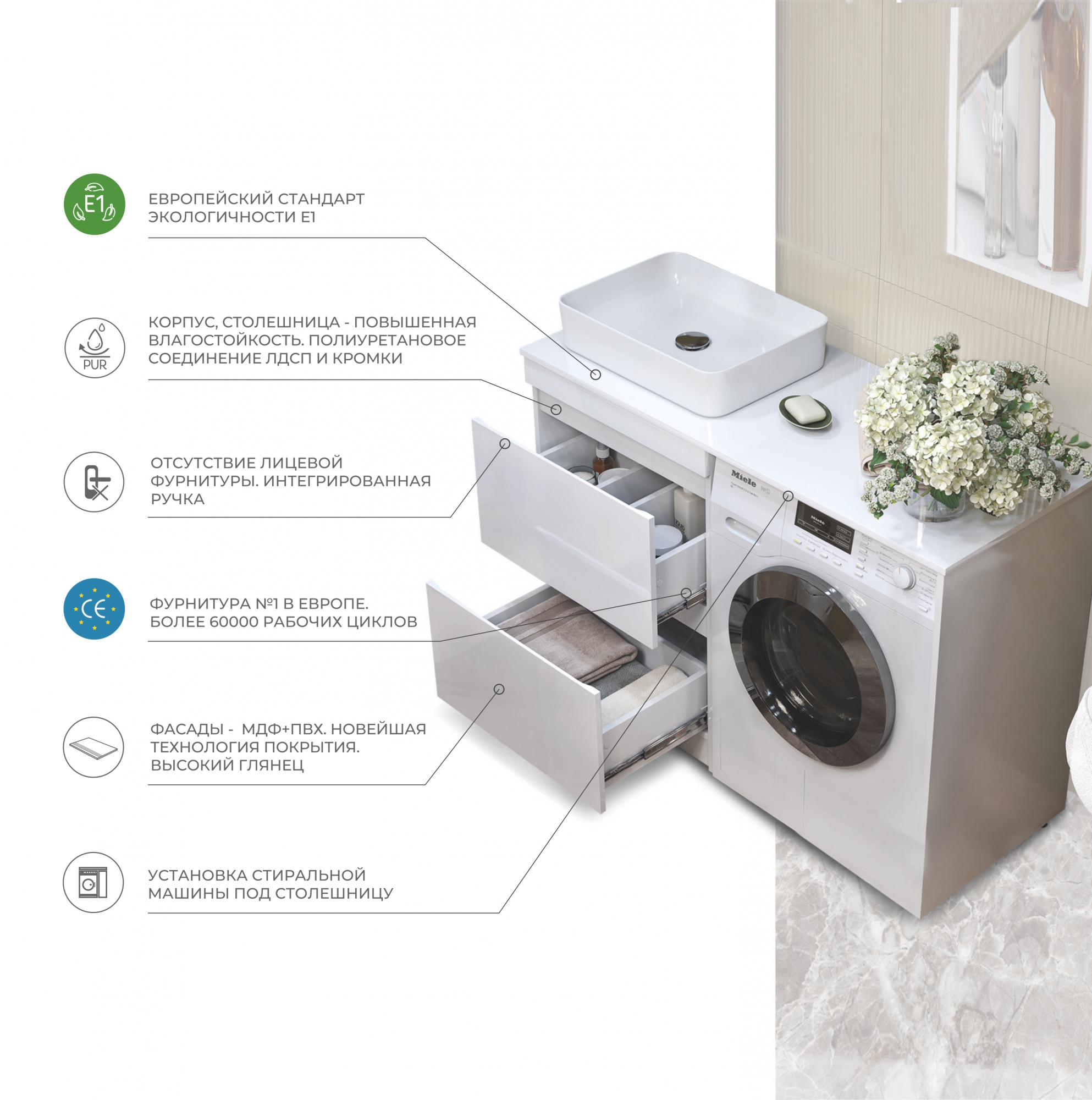 Инструкция для товара Тумба с раковиной Vigo Urban 600-0-2 120 белый глянец для стиральной машины L
