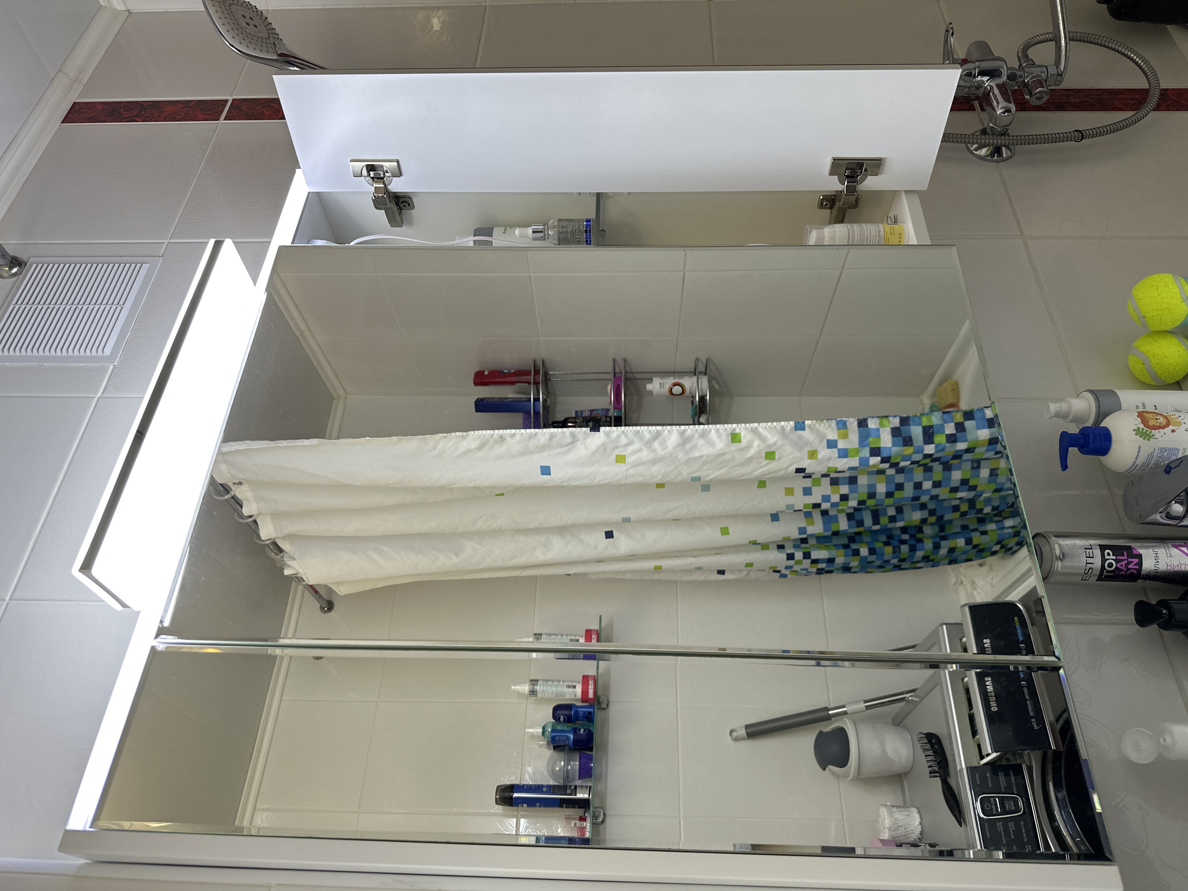 Зеркало зрительно увеличивает пространство, а подсветка добавляет ощущение уюта и камерности. Пригодится во время бритья, укладки волос и косметических процедур.